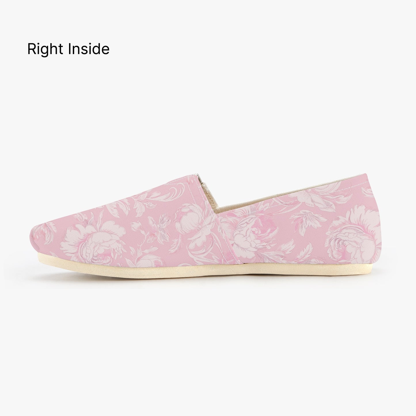 Step into timeless charm with our Pink Garden Slip-Ons. Delicate white floral patterns bloom across a soft pink canvas, bringing a touch of vintage elegance to your everyday look. These shoes are equal parts graceful and comfortable—perfect for brunch dates, strolls through the park, or simply brightening up your casual wear.